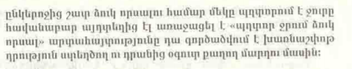 Ընկերոջից շատ ձուկ որսալու համար մեկը պղտորում է ջուրը: Հավանաբար այդտեղից էլ առաջացել է << պղտոր ջրում ձուկ որսալ>> արտահայտությունը ։ Դա գործածվում է խառնաշփոթ դրություն ստեղծող ու դրանից օգուտ քաղող մարդու մասին:
